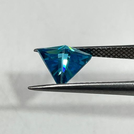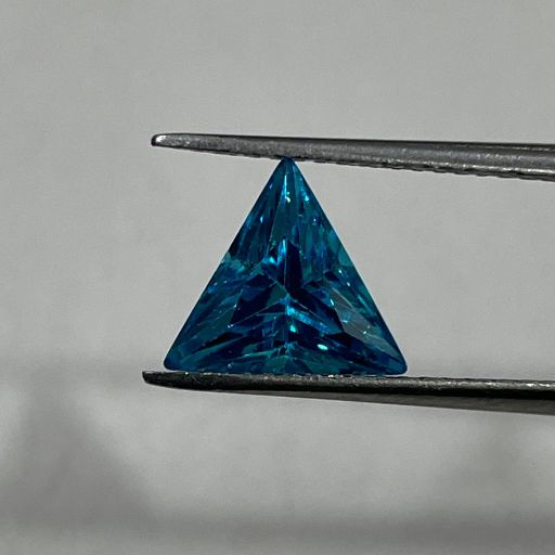 Brilliant Blue Colored Cubic Zirconia (CZ) in a sleek triangle shape, measuring 8×8 mm. A perfect gemstone for adding elegance and sparkle to any jewelry design.